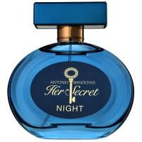 Antonio Banderas Her Secret Night - это аромат для женщин, принадлежит к группе ароматов восточные цветочные. Это новый аромат, Her Secret Night выпущен в 2016. Верхние ноты: Лимон, Мандарин, Черная смородина и Зеленое яблоко; ноты сердца: Апельсиновый цвет и Гардения; ноты базы: Пачули, Амбра, Сандал и Бобы тонка.